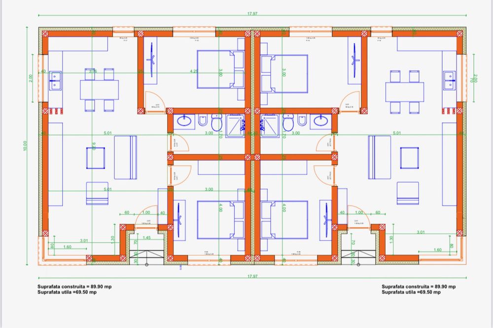 Vă propunem spre vânzare un proiect rezidențial modern, format din două locuințe cuplate , realizate cu finisaje premium , situate într-o zonă linistita cu o priveliște deosebita și acces facil , pe Strada Podgoriei ( Bistrita - Valea Ghinzii ) . Preț:99999 € plus TVA Specificatii tehnice și compartimentare inteligenta: Teren curte privata : 2.6 arii per unitate Locuințele sunt construite cu materiale de calitate superioară, respectând cotele din proiectul tehnic : -Suprafață construită per unitate: 90 mp -Suprafață utilă per unitate: 70 mp -Regim de înălțime: Parter -Living generos integrat cu bucătăria și zona de luat masa -Dormitor principal spațios -Dormitor secundar -Baie complet utilată -Hol de acces : Spațiu de primire cu zonă prevăzută pentru depozitare/cuier. -Terasa de acces : intrare principală acoperită și delimitată discret. Detalii Proiect și Finisaje •Stadiu predare: La cheie, cu finisaje premium incluse •Localizare: Strada Podgoriei, in curs de asfaltare oferind acces facil și infrastructură în dezvoltare •Design: Arhitectură contemporană cu fațade placate cu cărămidă aparentă și accente de culoare antracit/alb •Termen de predare: August 2026 •Comision: 0% (Vânzare directă de la dezvoltator)!! Casa dispune de toate utilitățile necesare și se predă complet funcțională ! Avantaje •Priveliște panoramică superbă asupra zonei înconjurătoare •Geamuri largi pentru un aport generos de lumină naturală •Curte privată cu acces din living și locuri de parcare amenajate Pentru detalii și vizionari : 07******35