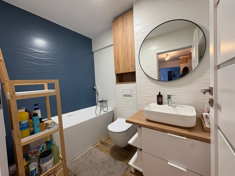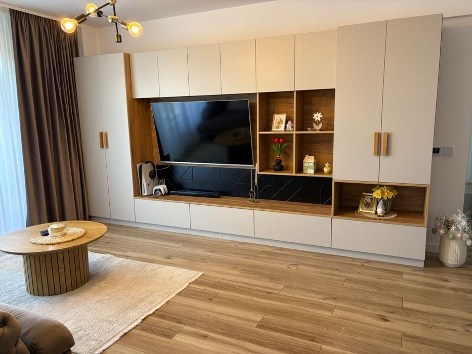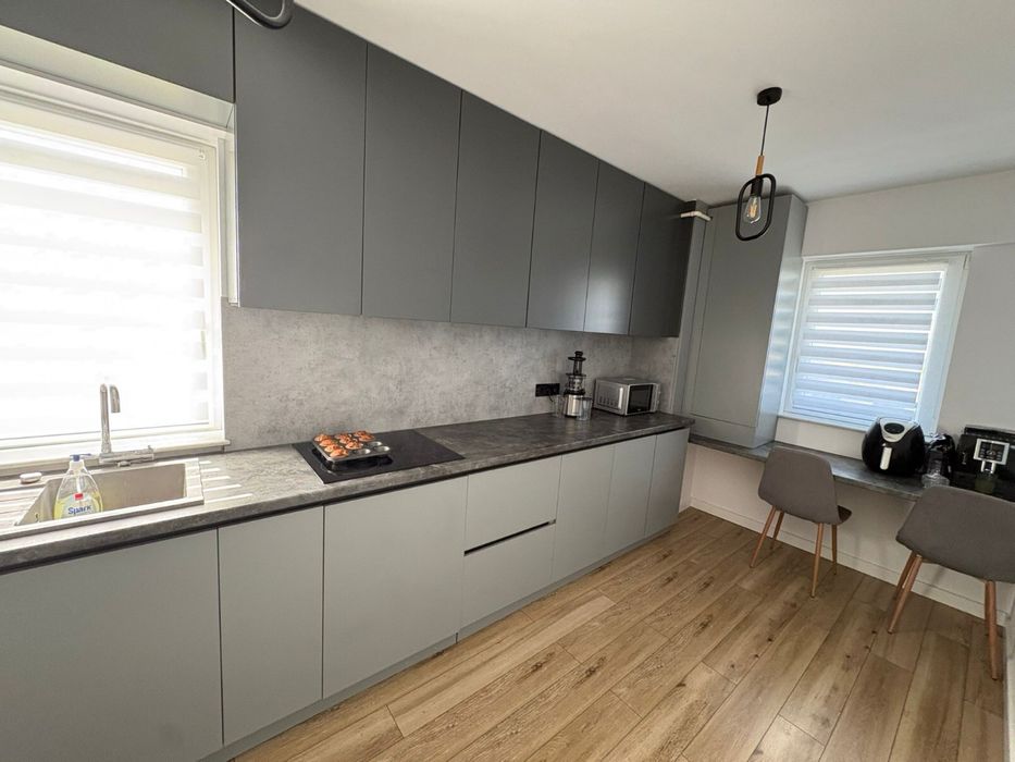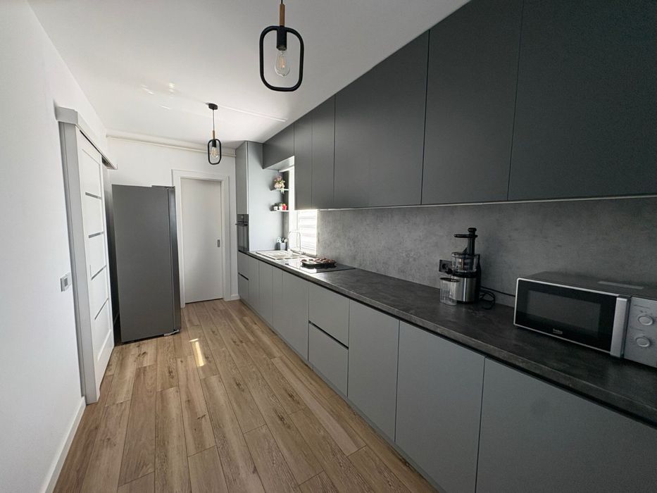 Apartament de vânzare direct de la proprietar(persoana fizica), finisaje premium, complet mobilat și utilat Str. Mălinului, Bistrița Se oferă spre vânzare un apartament modern, cu o suprafață de 77,5 mp + terasă de 7,5 mp, situat pe strada Mălinului, într-o zonă liniștită și bine conectată. Imobilul este situat într-un bloc finalizat în 2022, izolat termic, și dispune de loc de parcare suprateran. Avantaj suplimentar: poziționare excelentă, în apropiere de Kaufland, Dedeman și OK Shopping Center. Dotări și beneficii: • Lift modern- etaj 3 din 6 • Încălzire în pardoseală cu programare smart • Sistem de iluminat smart • Centrală pe gaz în condensare • Electrocasnice incluse: mașină de spălat, uscător de haine, mașină de spălat vase, cuptor electric, plită electrică, hotă • Frigider side-by-side • Baie elegantă cu cadă freestanding • Mobilier de calitate superioară Compartimentare eficientă: • 2 dormitoare • Living spațios • Bucătărie închisă • Baie • Hol • Cămară • Balcon Apartamentul este ideal pentru cei care caută confort și un design deosebit. Pentru mai multe detalii sau programarea unei vizionări, nu ezitați să mă contactați.